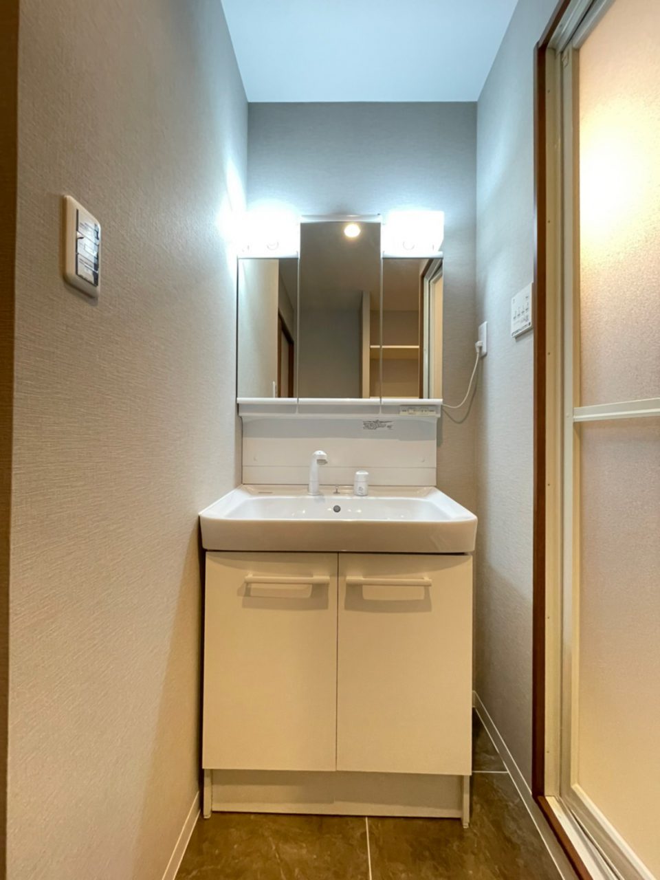 洗面台 :三面鏡付洗面化粧台交換