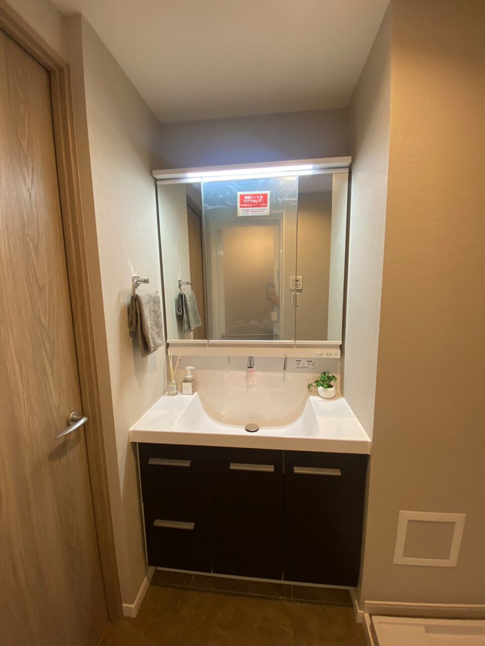 洗面台 :三面鏡付洗面化粧台交換(リクシル社製W900)