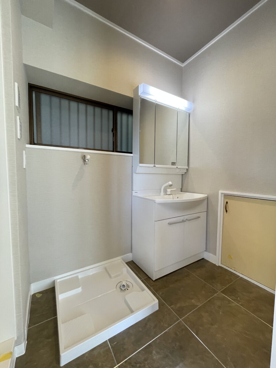 洗面台 :三面鏡付洗面化粧台交換