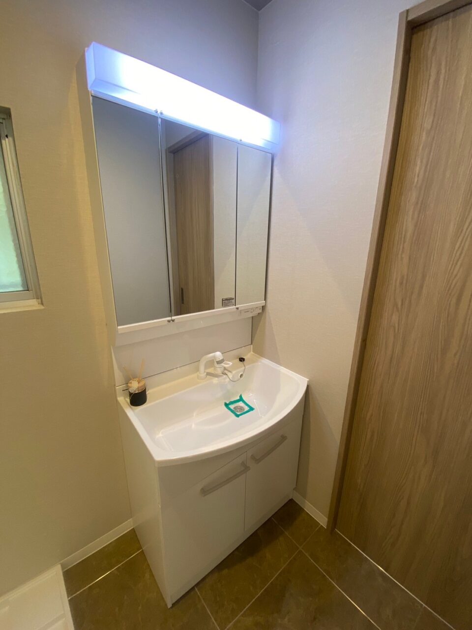 洗面台 :三面鏡付洗面化粧台交換(パナソニック社製エムラインW750)