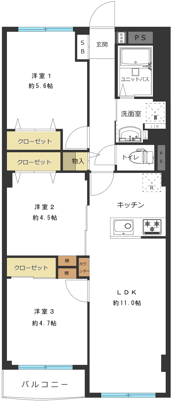 クロス :壁・天井全面張替(一部アクセントクロス有)