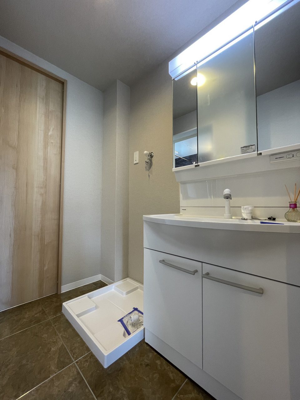 洗面台 :三面鏡付洗面化粧台交換(パナソニック社製エムライン750W)