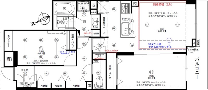 ダウンライト新設、スイッチパネル交換、配管更新、火災警報器交換、カーテンレール交換