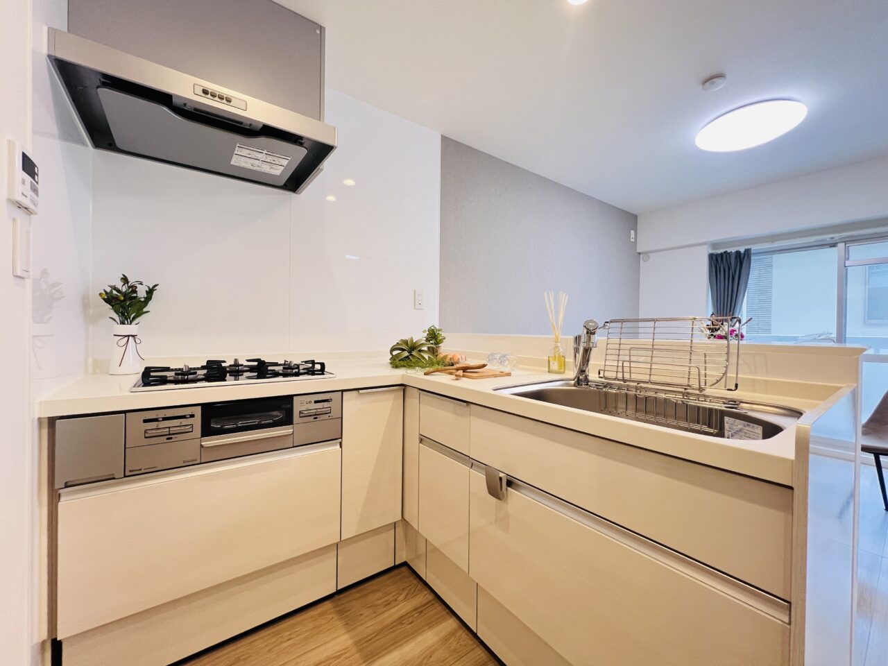 クロス全面張替、水栓交換、ガスコンロ交換、便座交換