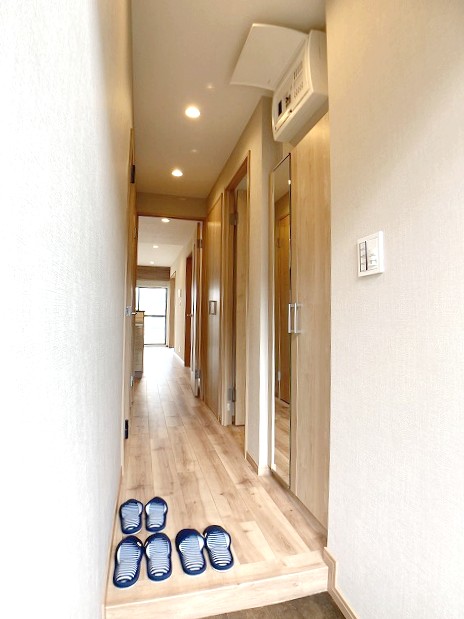 ダウンライト新設、スイッチパネル交換、各室AC先行配管、カーテンレール交換