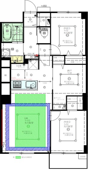 その他 :洗濯防水パン設置、給湯器交換(オートタイプ20号)、録画機能付カラーTVモニター付インターホン交換、ダウンライト新設、スイッチパネル交換、配管更新、火災警報器交換、カーテンレール交換